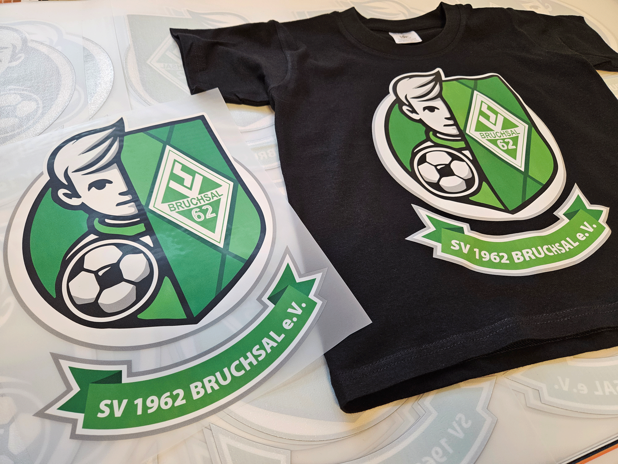 Der Transferdruck ist ein beliebtes Druckverfahren, bei dem Motive, Logos oder Designs zuerst auf eine spezielle Transferfolie gedruckt und anschließend mithilfe von Hitze und Druck auf das Textil übertragen werden. Dieses Verfahren ermöglicht gestochen scharfe Ergebnisse und eine hohe Farbbrillanz, wodurch es sich ideal für detailreiche Motive eignet.